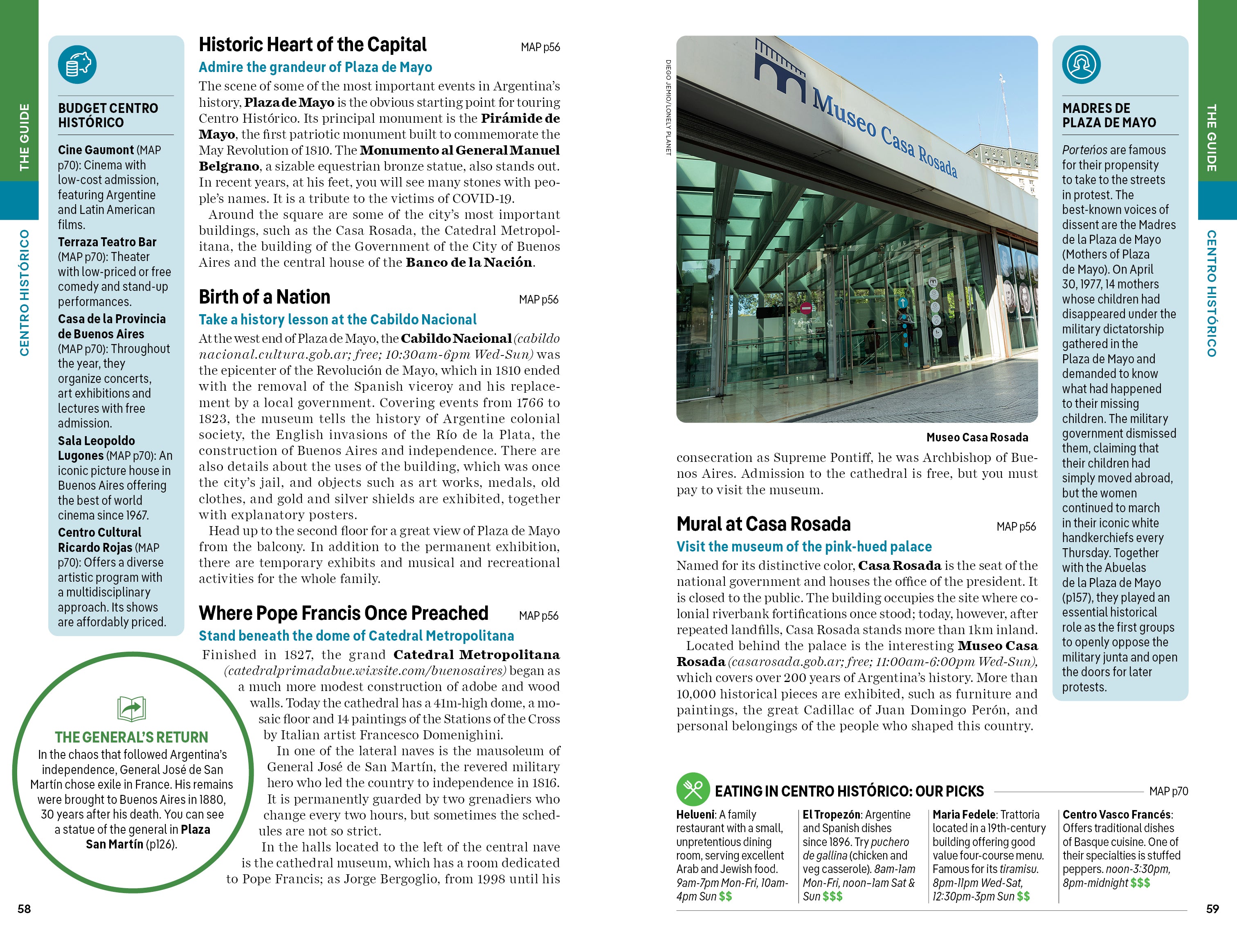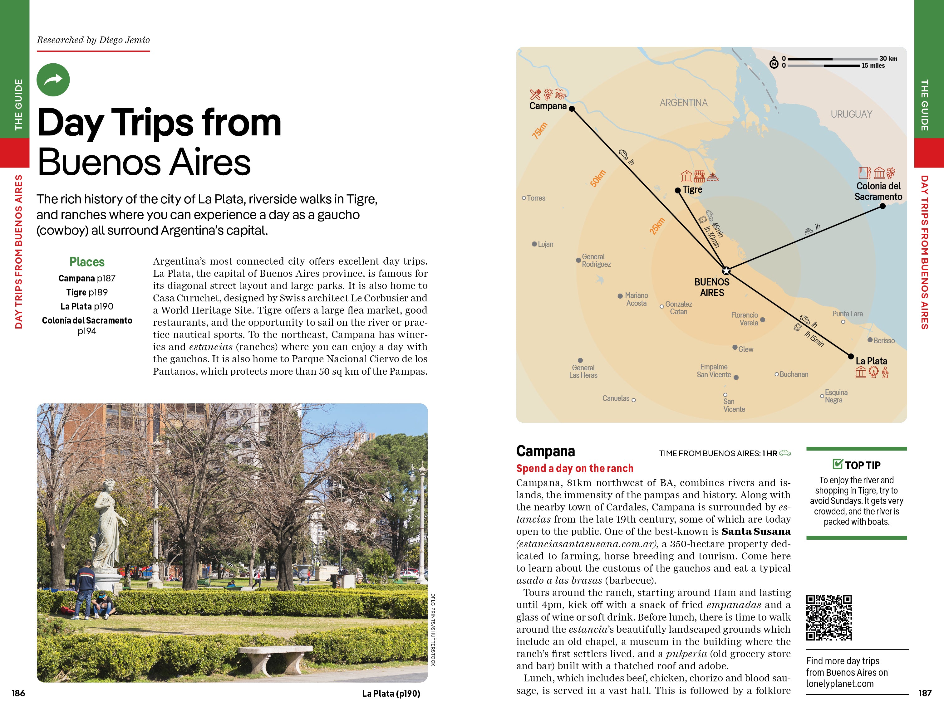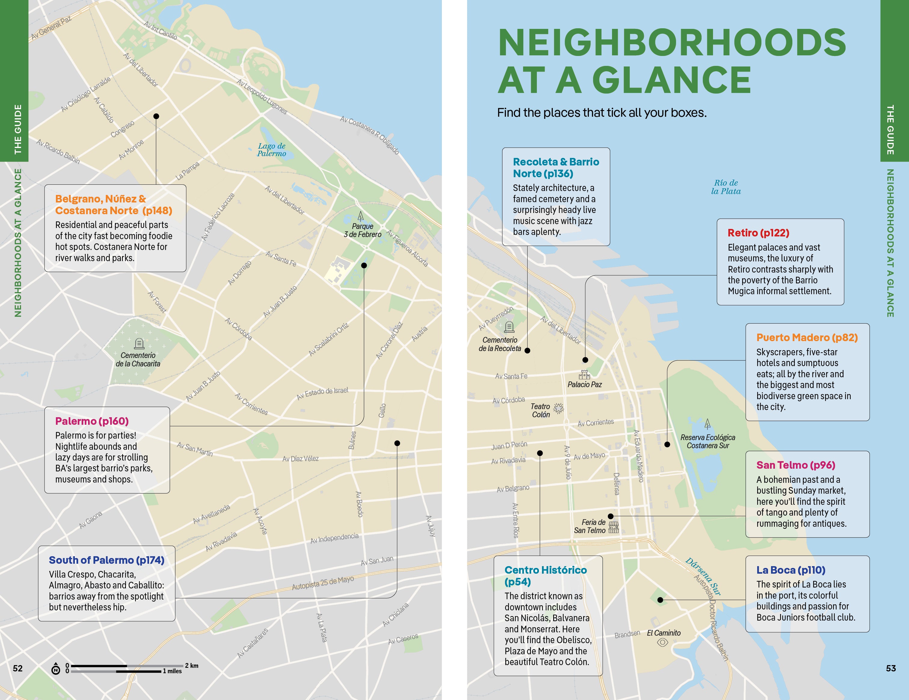 - Covers: Centro Histórico; Puerto Madero; San Telmo; La Boca; Retiro; Recoleta & Barrio Norte; Belgrano, Núñez & Costanera Norte; Palermo; South of Palermo plus day trips to Campana; Tigre; La Plata; Colonia del Sacramento