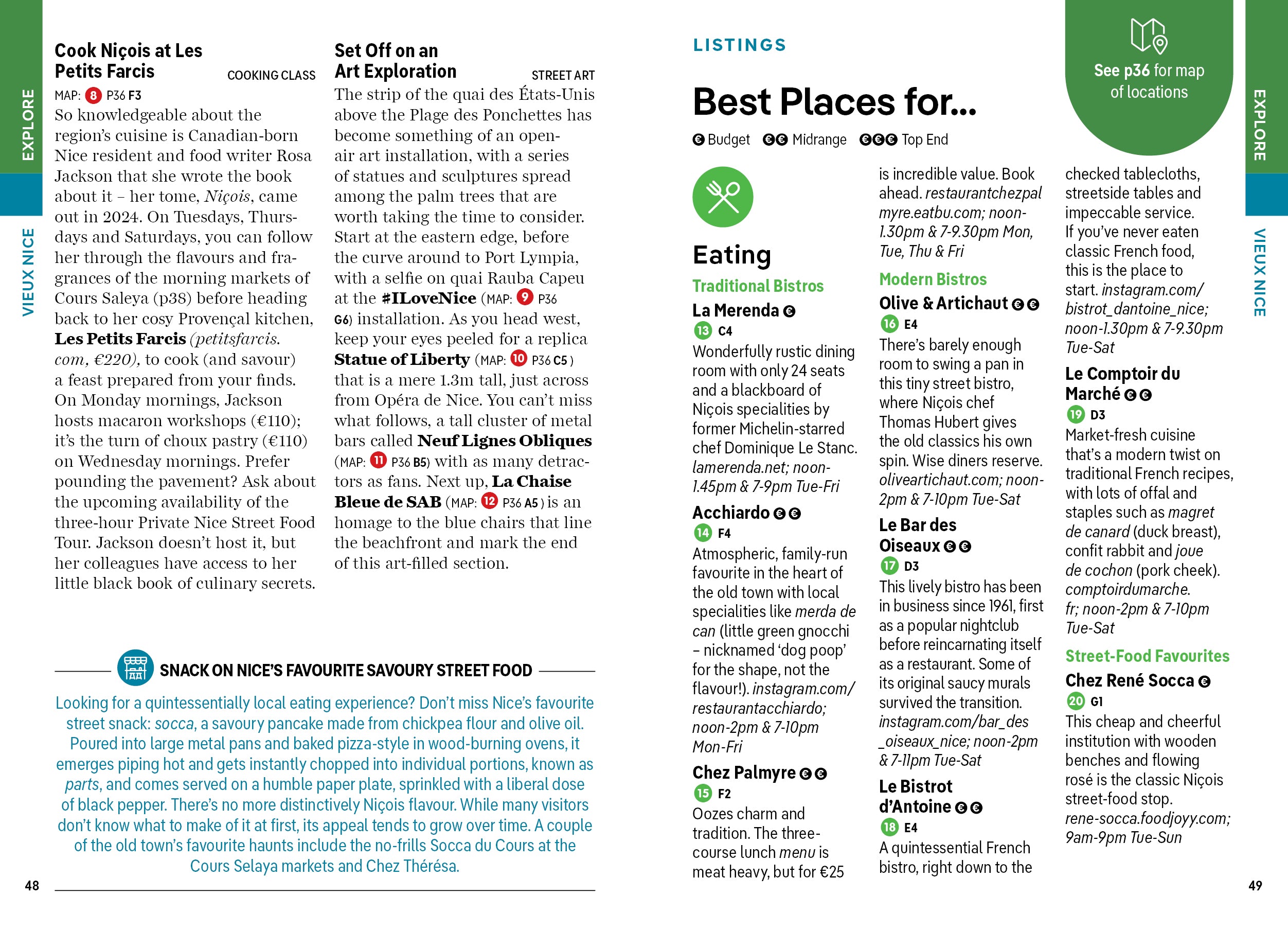 - Covers: Vieux Nice; New Town & Promenade des Anglais; Cimiez, Libération & Vernier; Le Port-Garibaldi; Monaco