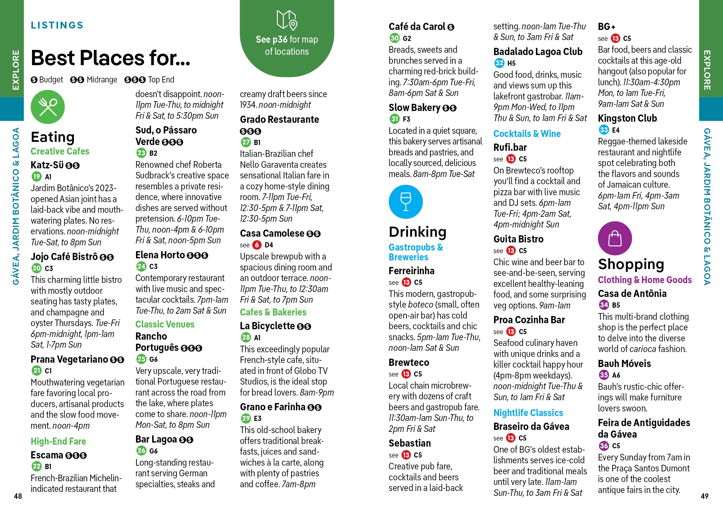 • Covers: Gávea, Jardim Botânico & Lagoa; Ipanema & Leblon; Copacabana & Leme; Botafogo, Urca & Humaitá; Flamengo, Laranjeiras, Catete & Glória; Santa Teresa & Lapa; Centro & Zona Norte; Zona Oeste