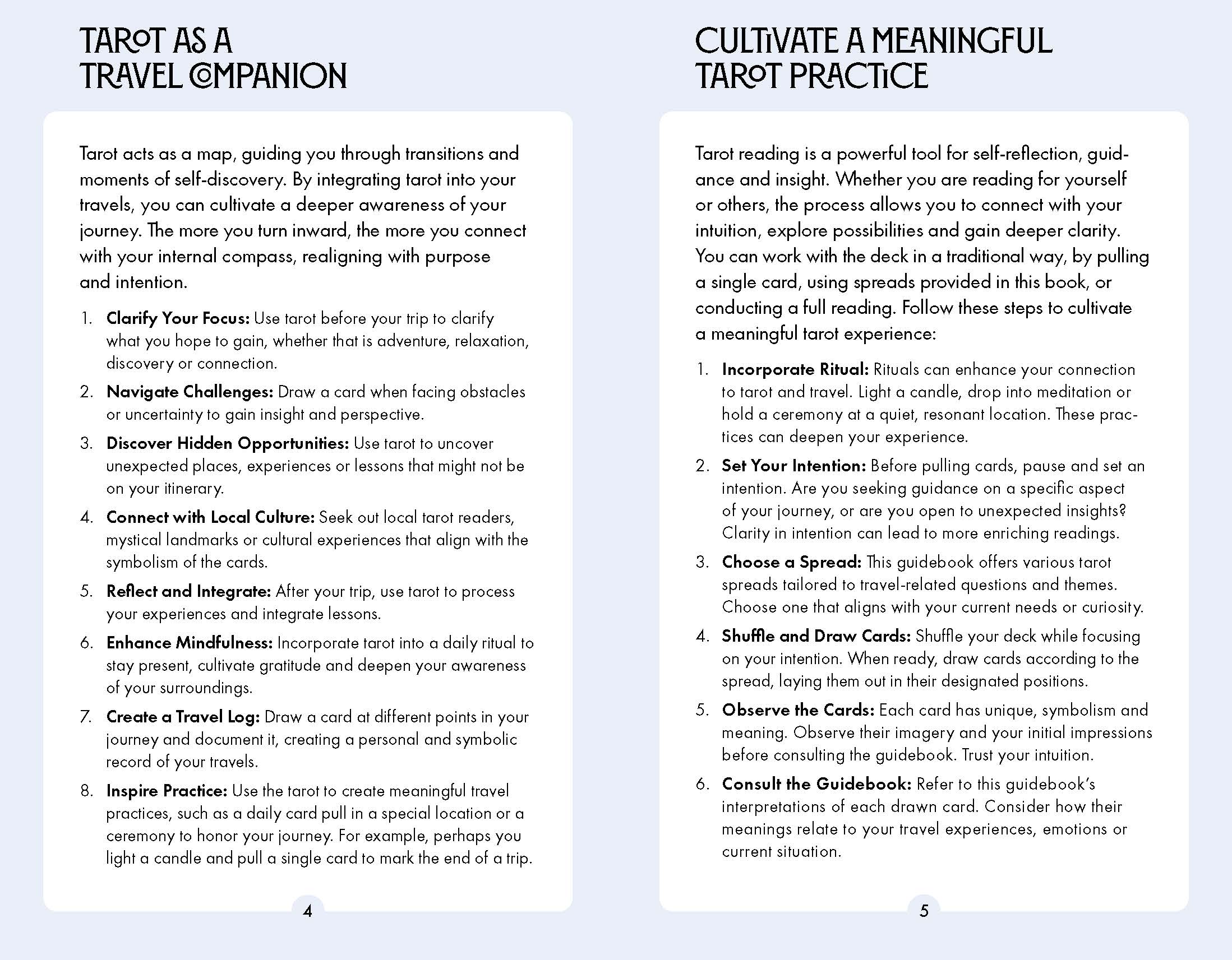- A handy guidebook helps readers connect with the Travel Tarot deck and explains: Tarot as a travel companion; cultivating a meaningful Tarot practice; conducting Tarot readings; structure of the Tarot deck; the cards and what they represent