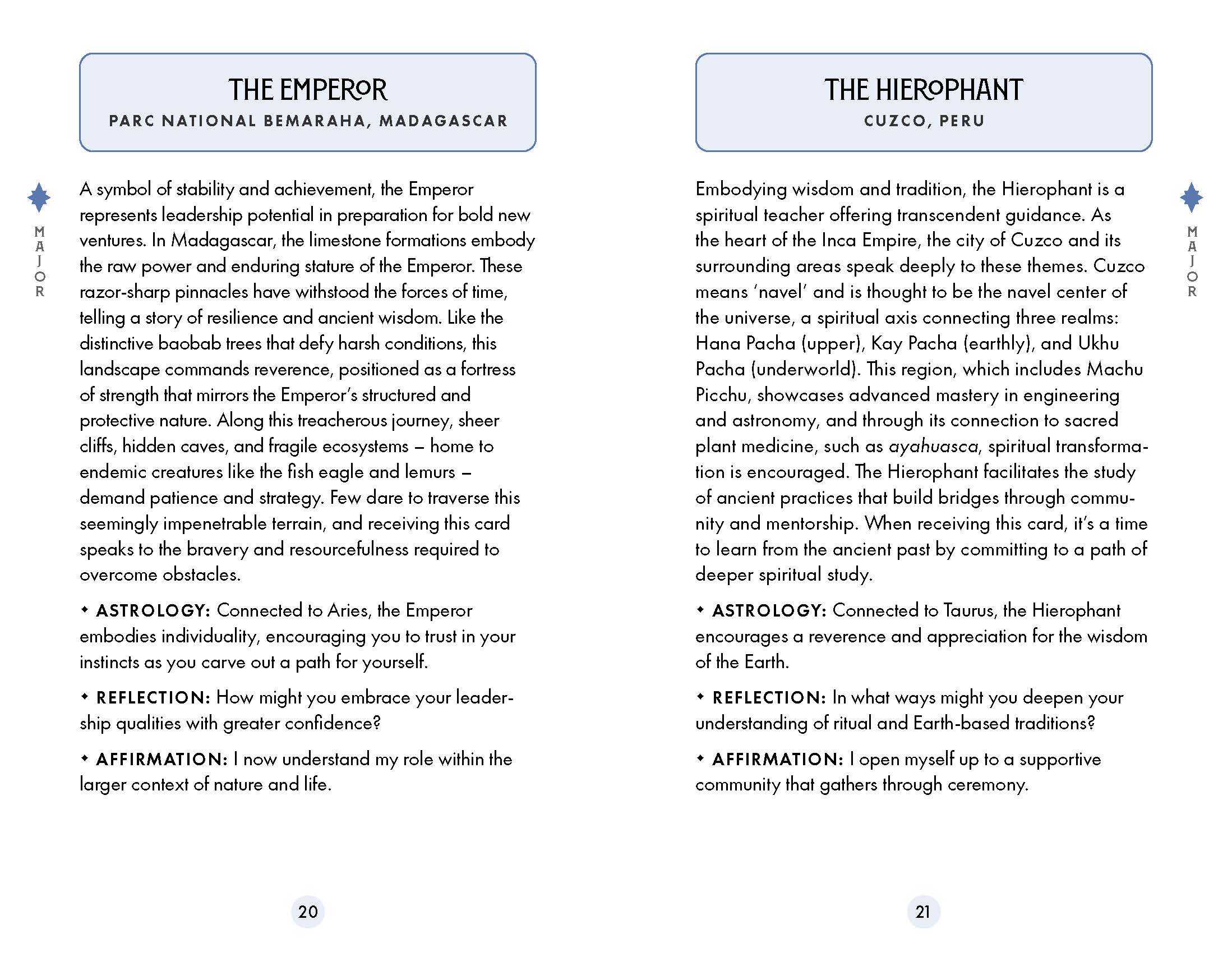 - Comprehensive list of worldwide destinations matched to each card, each chosen intuitively and grounded in a studied understanding of tarot's symbolism