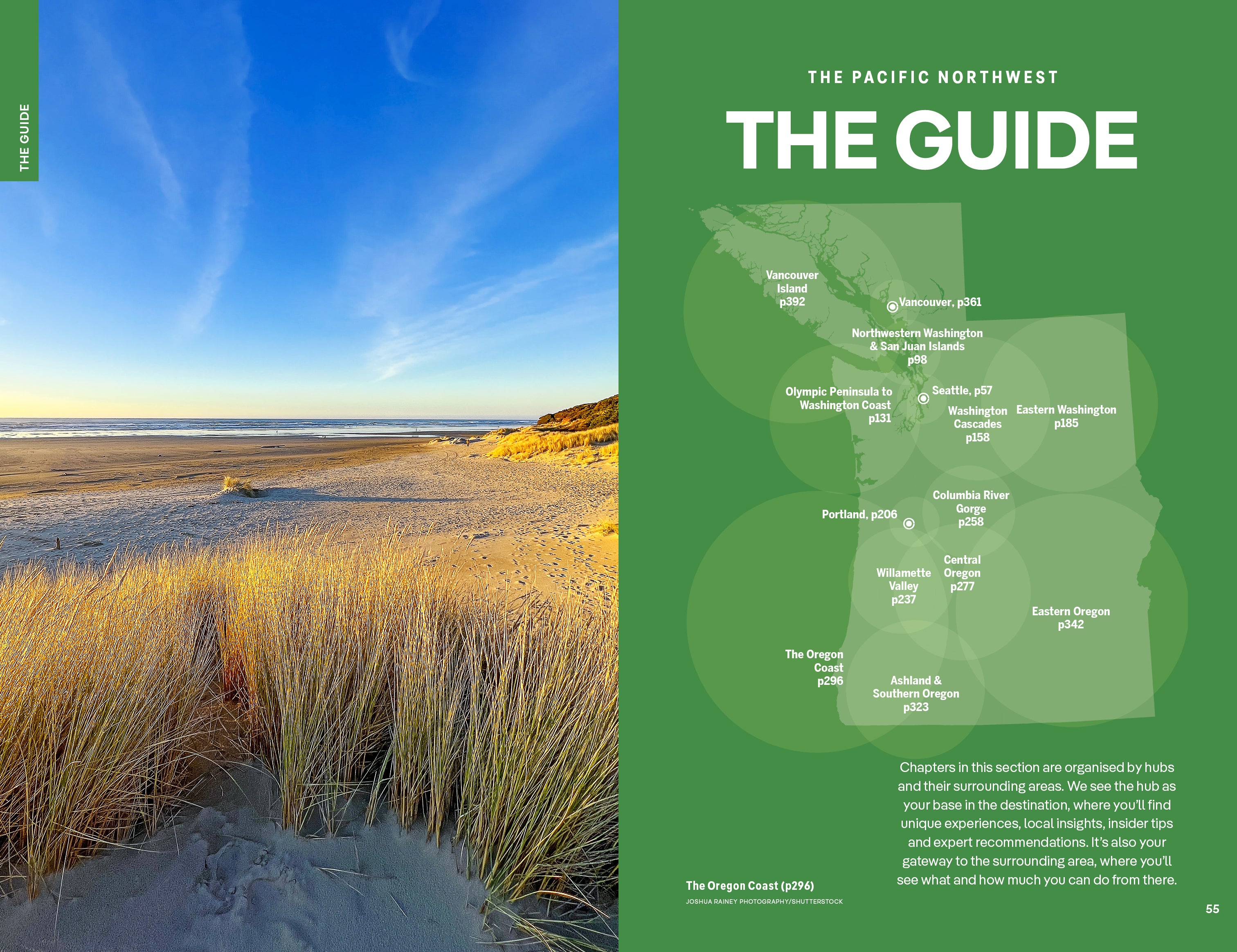 - Covers: Seattle, Northwestern Washington & the San Juan Islands, Olympic Peninsula & Washington Coast, Washington Cascades, Eastern Washington, Portland, Willamette Valley, Columbia River Gorge, Central Oregon, The Oregon Coast, Ashland & Southern Oregon, Eastern Oregon, Vancouver, Vancouver Island